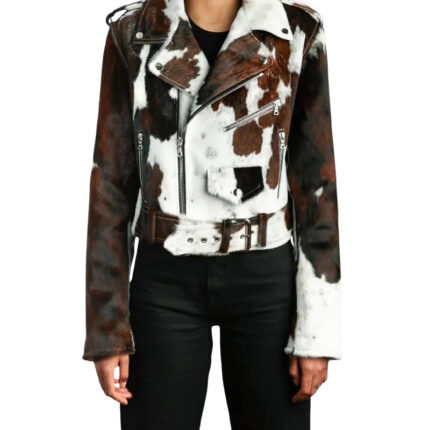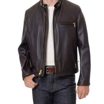 Men’s Genuine Brown Cowhide Fringe Leather Moto Jacket