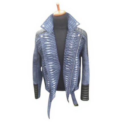 Blue Biker Python Leather Jacket | Exotic Snakeskin Outerwear for Men