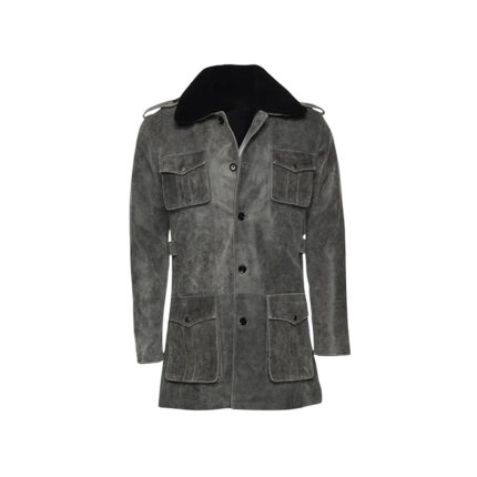 Men’s Vintage Grey Leather Long Coat