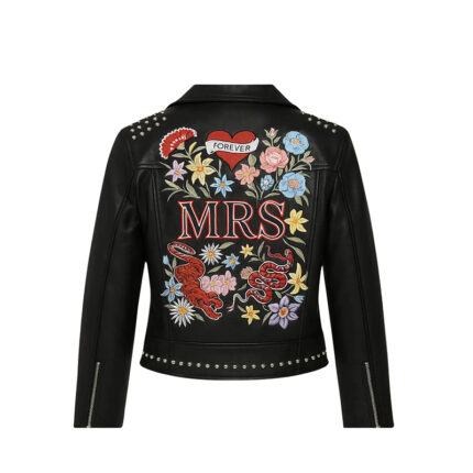 Custom Bride Leather Jacket, Customized Jacket, Embroided Leather Jacket