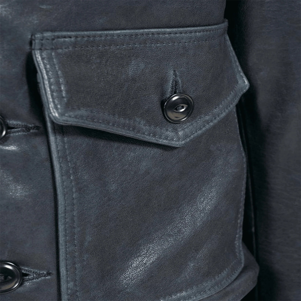 This customized handmade A-1 flight jacket is crafted from lightweight genuine leather in a sleek navy blue finish, blending classic bomber aesthetics with everyday versatility. Designed with a button-front closure, ribbed cuffs, and a knit collar, it offers a relaxed yet refined silhouette. The soft leather provides comfort without compromising durability, making it perfect for year-round wear. With functional pockets and detailed stitching, this jacket delivers both utility and timeless style. A must-have for those who appreciate minimalist design with handcrafted quality and military-inspired flair.