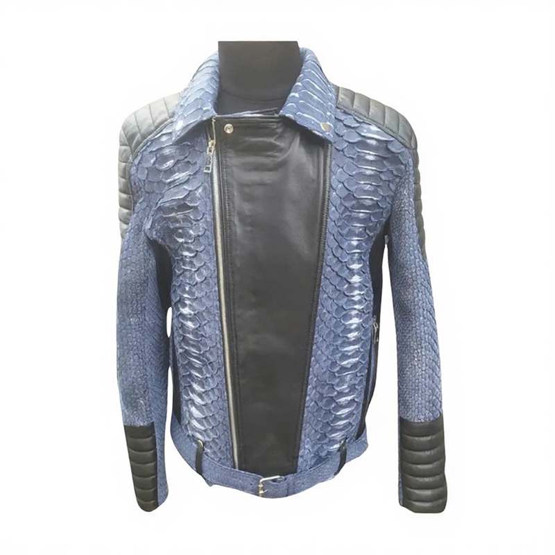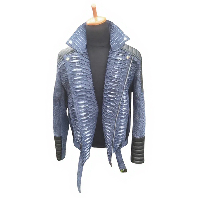 Home Men Suede Jackets Blue Biker Python Leather Jacket | Exotic Snakeskin Outerwear for Men