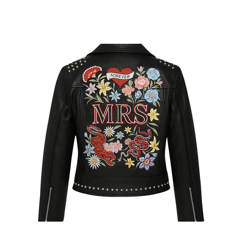 Bridal Leather Jackets are such a hit these days! If you’re looking for the perfect fall or winter wedding jacket, our custom bridal leather jackets are great! With fully customizable embroidered options such as thread, image, and leather, our customized Printed jacket is sure to be the wedding jacket of your dreams. Our leather jackets also have fully functional pockets and zippers on the sleeve to expand the arm opening. These also make a great engagement gift or bridal shower gift for a bride-to-be. If you need your bachelorette party accessory, this black leather jacket is sure to help you rock your bach party!