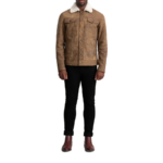 Dallis Brown Suede Shearling Trucker Jacket