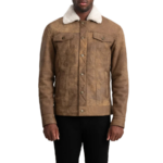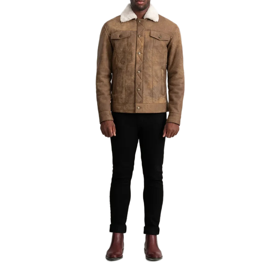 Men’s Brown Shearling Leather Trucker Jacket