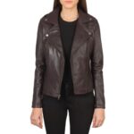Home Women Biker Jackets Flashback Maroon Leather Biker Jacket