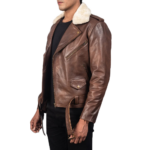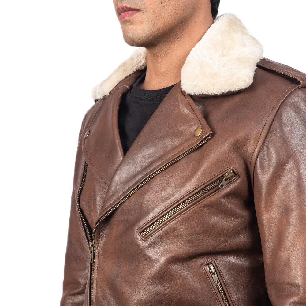 Home Men Fur & Shearling Furton Brown Leather Biker Jacket