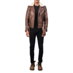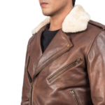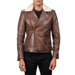 Men’s Dark Brown Leather Bomber Jacket with Shearling Collar