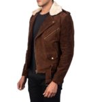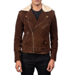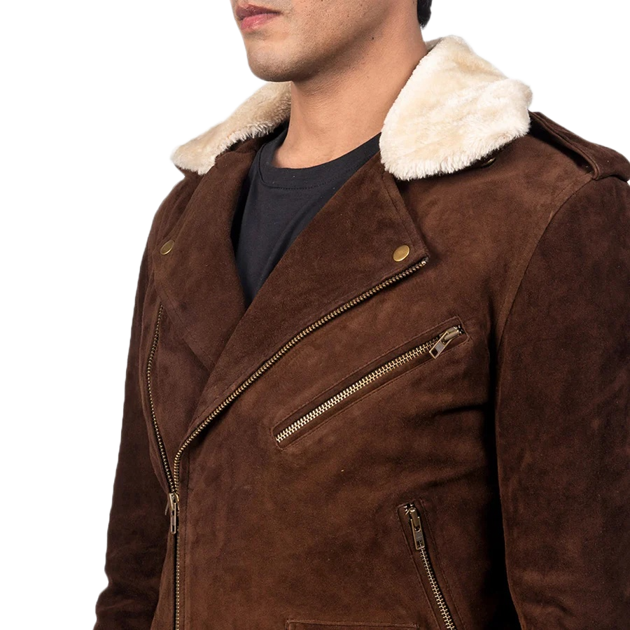 Home Men Fur & Shearling Furton Mocha Suede Biker Jacket