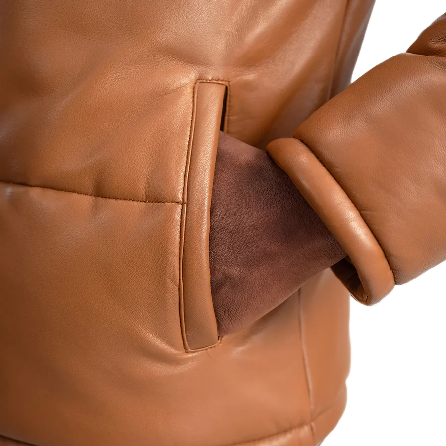 Lucas Brown Leather Puffer Bomber Jacket