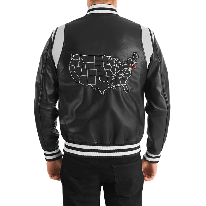 Liberte New Jersey Black Leather Varsity Jacket