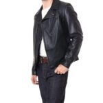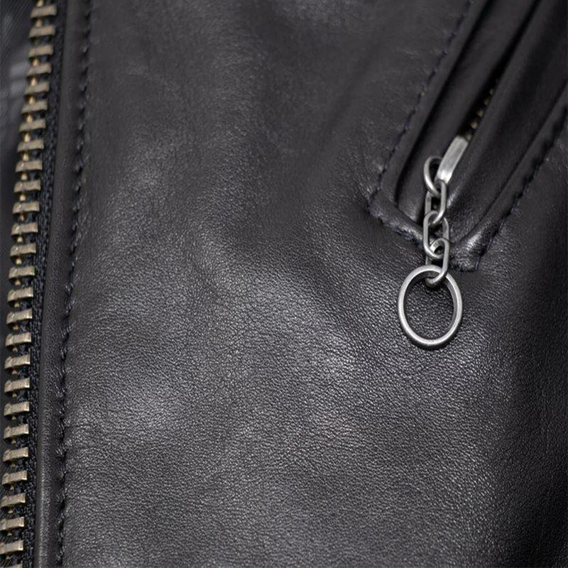 This customized handmade motorcycle jacket is crafted from lightweight cowhide leather, offering classic rider style with all-season comfort. Designed with a clean front zip, snap collar, and a streamlined fit, it’s perfect for daily rides or casual wear. The supple leather provides freedom of movement while still offering dependable durability and protection. Reinforced stitching and functional pockets add to its practical appeal. Whether on the road or off-duty, this jacket delivers timeless biker energy backed by handcrafted quality and everyday versatility.