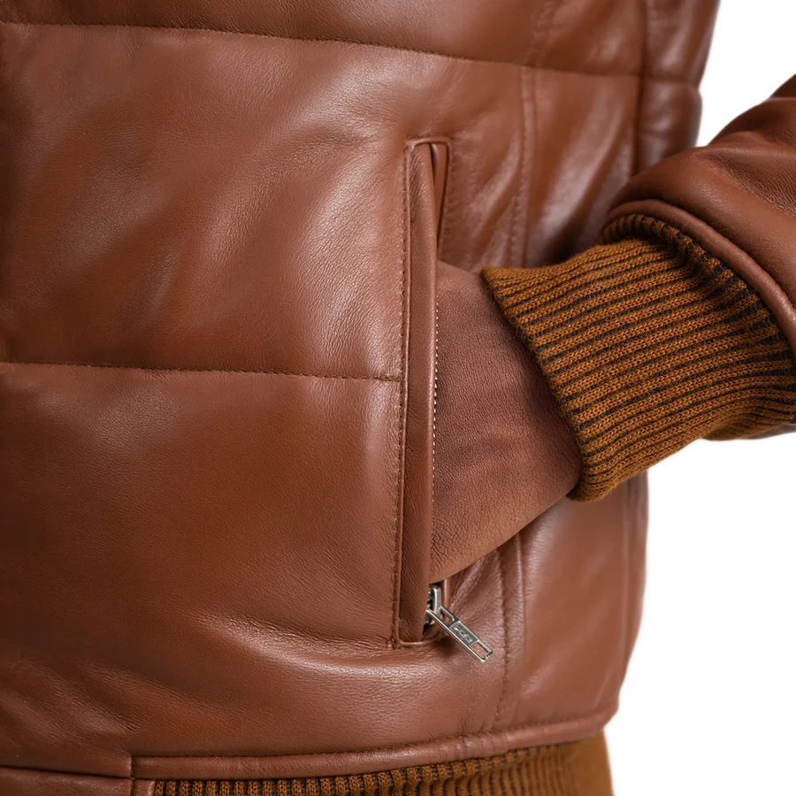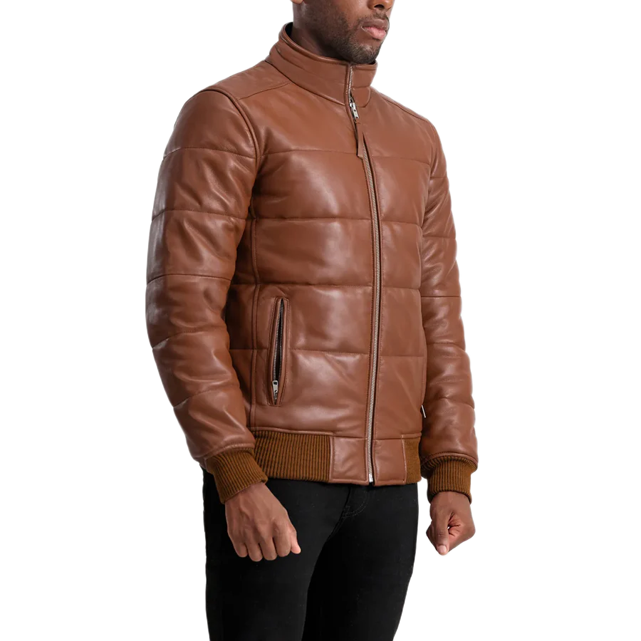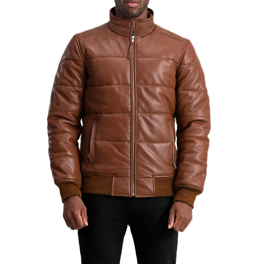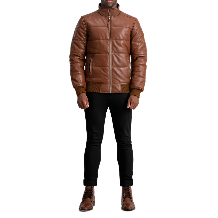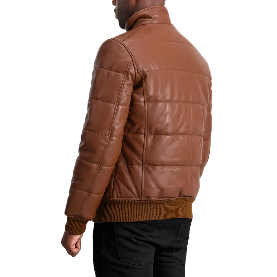 Lucas Brown Leather Puffer Bomber Jacket