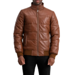 Be the first to review “Lucas Brown Leather Puffer Bomber Jacket” Cancel reply