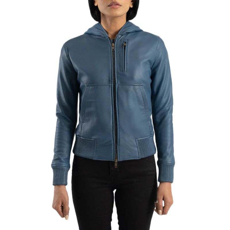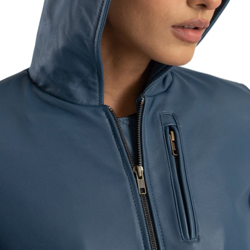 Be the first to review “Luna Blue Hooded Leather Bomber Jacket” Cancel reply