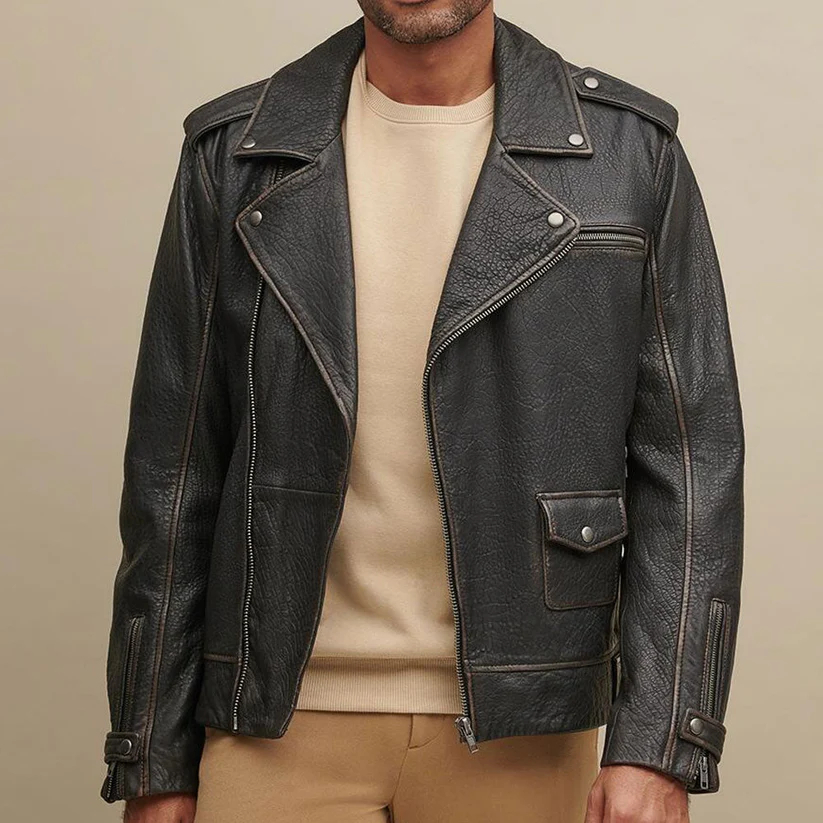 Rev up your style with the Men’s Asymmetrical Leather Biker Jacket. This jacket features a distinctive asymmetrical design that sets you apart from the crowd while offering robust protection. Made from high-quality leather, it combines durability with a sleek, edgy look. The asymmetrical zipper and tailored fit enhance both comfort and style, making it perfect for bikers and fashion enthusiasts alike. With reinforced stitching and padded details, it ensures safety without compromising on aesthetics. Elevate your ride and wardrobe with this standout piece. Shop now for top-notch quality, hassle-free shipping, and excellent customer service.