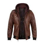 For the best value and something truly extraordinary, consider this stunning black & brown leather bomber hooded jackets for men. It’s the perfect leather and hoodie jacket for casual outings. Crafted from real lambskin leather, it boasts features like a zipper, pockets, decorative seams, and even a removable hood.
