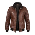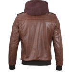 Men’s Black & Brown Leather Jacket with Removable Hoodie
