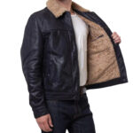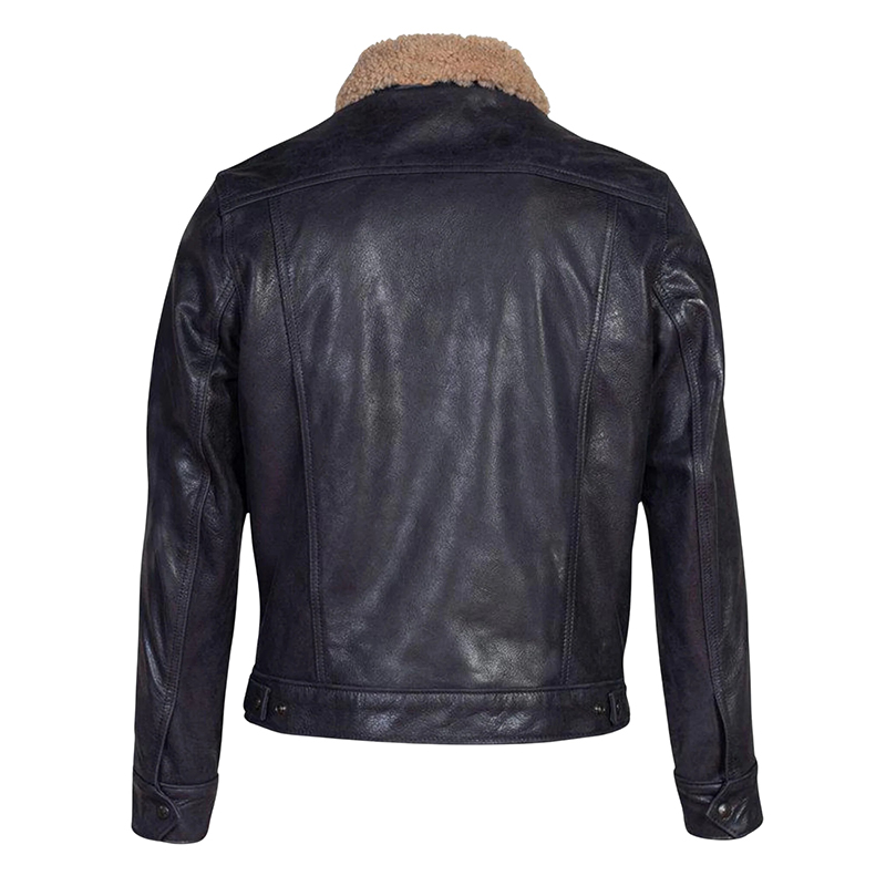 This customized handmade trucker jacket is crafted from rugged buffalo leather and features a plush sheepskin collar for added warmth and vintage appeal. The natural grain of the buffalo leather offers durability and a rich, textured look that ages beautifully with time. Designed in a classic trucker silhouette, it includes button-front closure, flap chest pockets, and reinforced stitching for everyday strength. Perfect for cooler weather, this jacket blends timeless workwear style with handcrafted quality and elevated comfort.