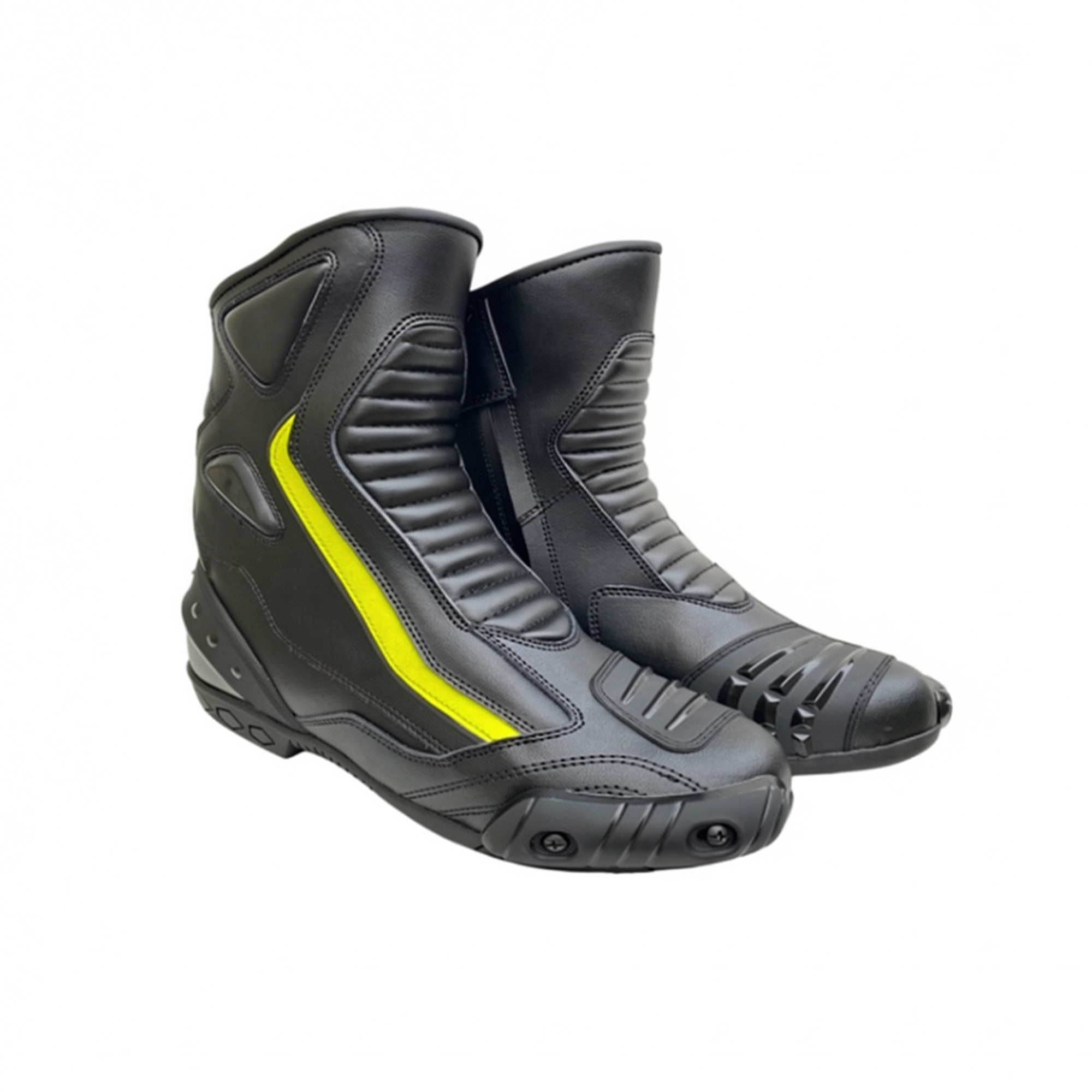 Men’s Half Long Motorcycle Racing Boots Original Leather Motorbike Riding Short Shoes Yellow Black