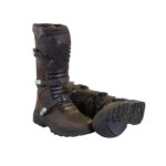 Motocross boots are designed to offer both protection and performance for riders. Typically made from durable leather or synthetic materials, these boots feature reinforced areas around the toes, heels, and ankles to guard against impacts and abrasions. Many models include a padded collar and a moisture-wicking lining for added comfort and breathability.