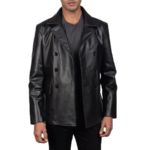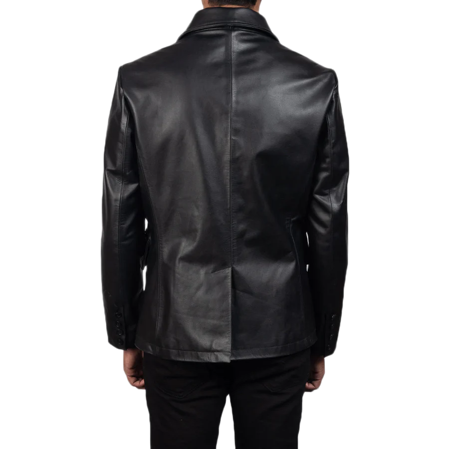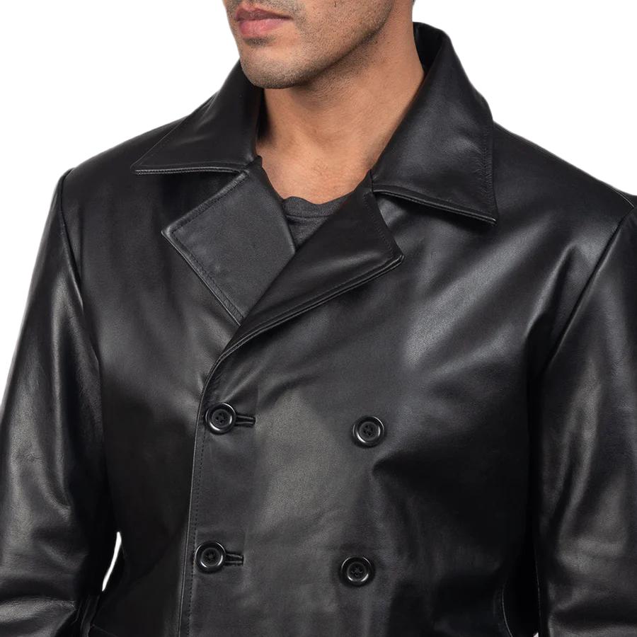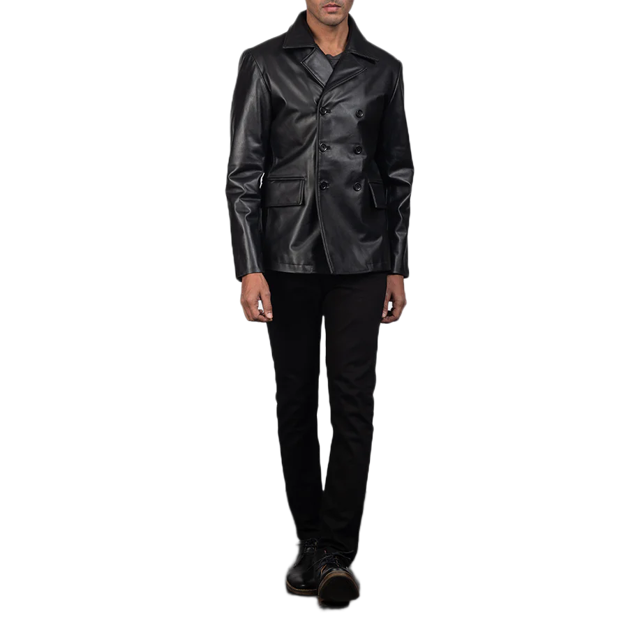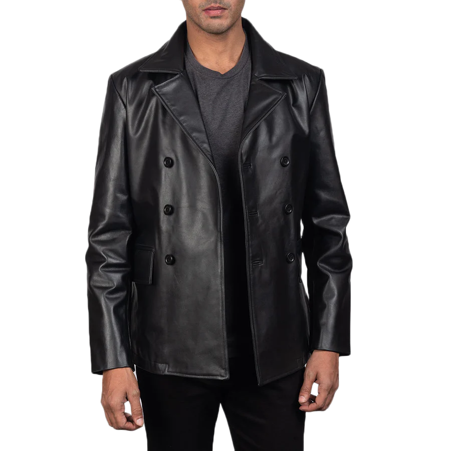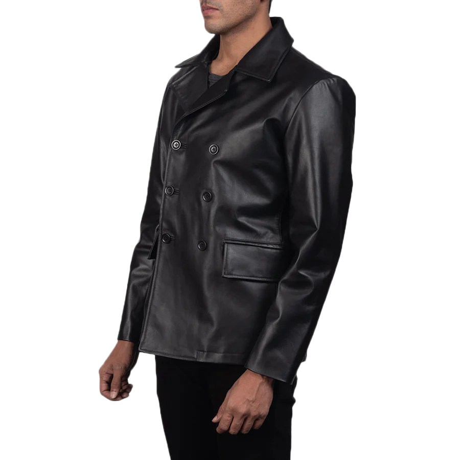 Home Men Leather Blazers Mr. Bailey Black Leather Naval Peacoat