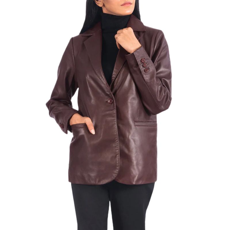 Home Women Leather Blazers Norma Maroon Leather Blazer
