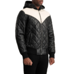 Be the first to review “Norman Black Hooded Bomber Leather Puffer Jacket” Cancel reply
