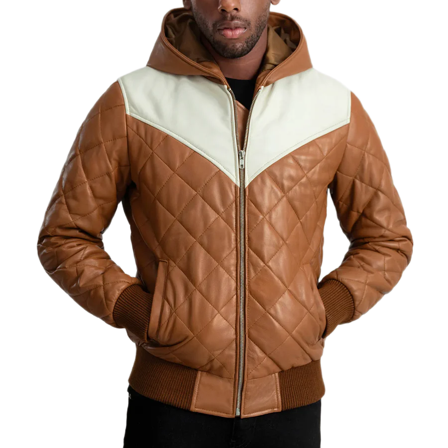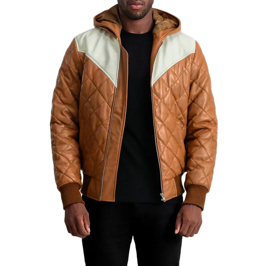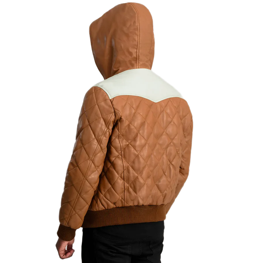 Men’s Black & Brown Leather Jacket with Removable Hoodie