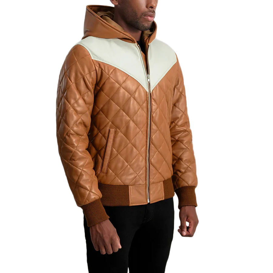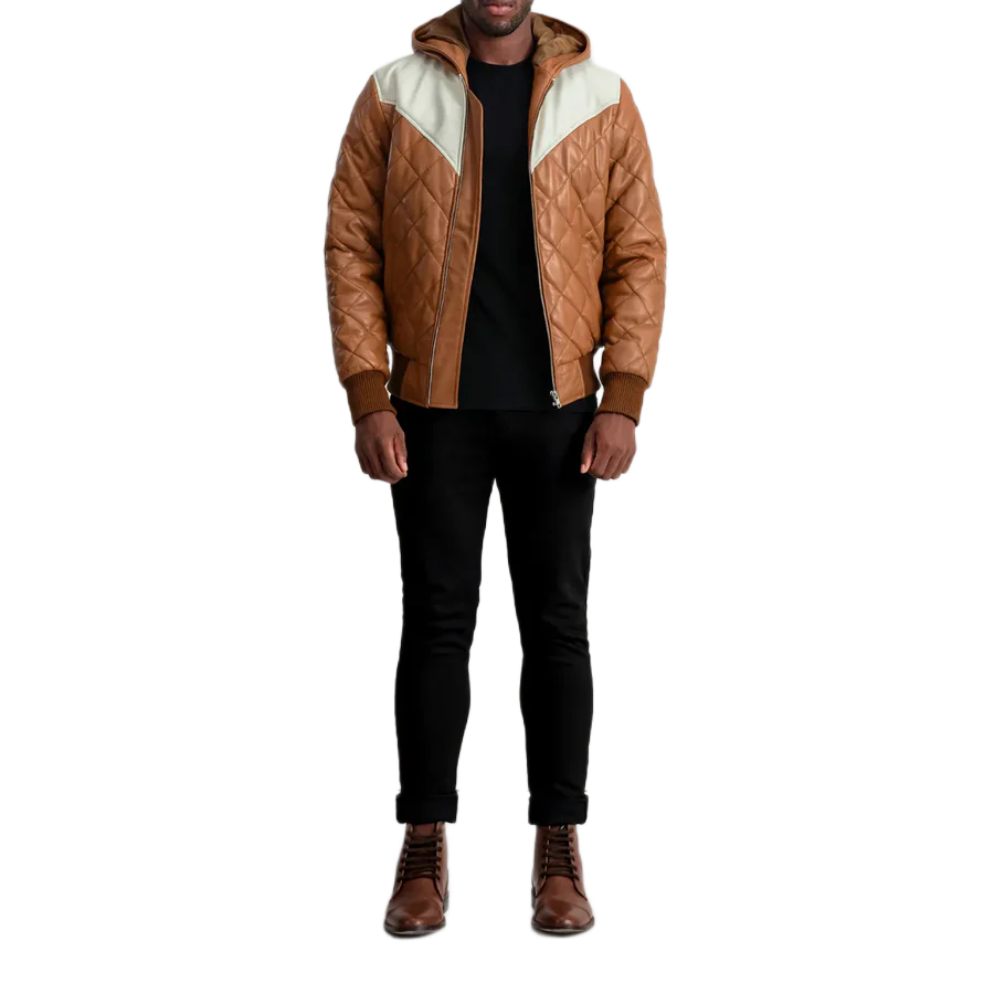 Be the first to review “Norman Tan Hooded Bomber Leather Puffer Jacket” Cancel reply