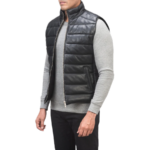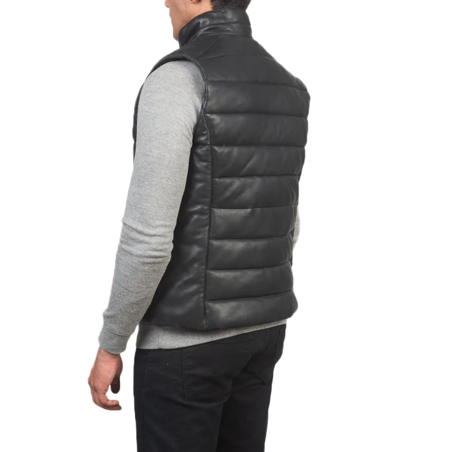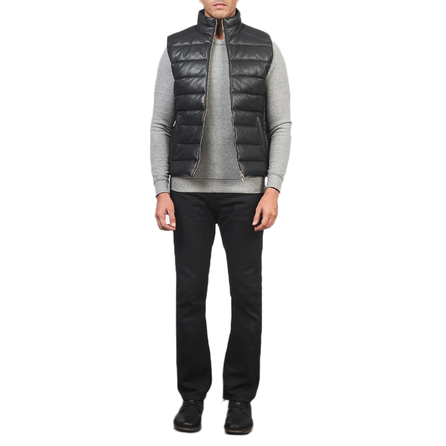 Reeves Black Leather Puffer Vest