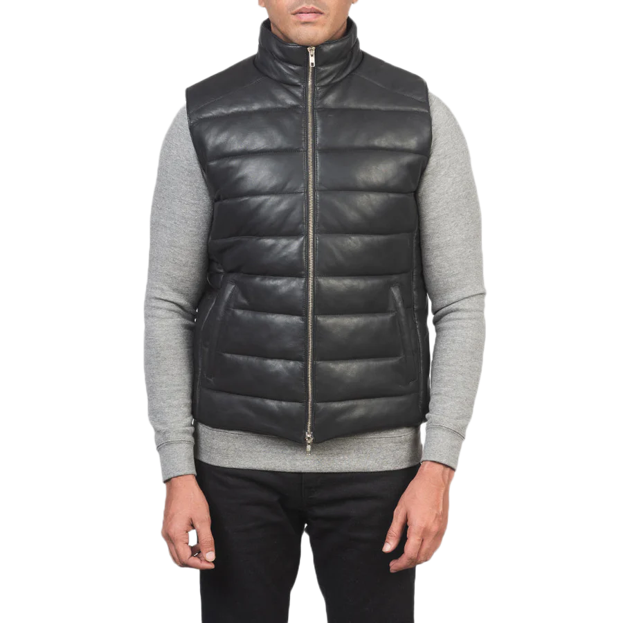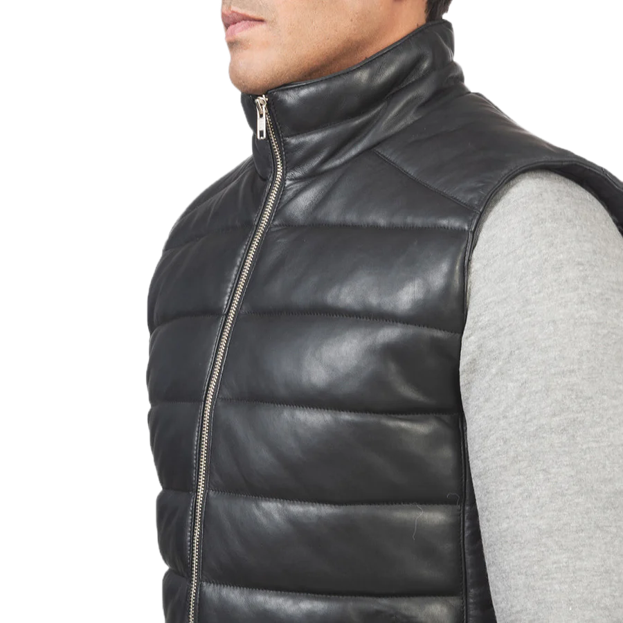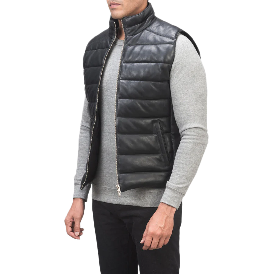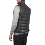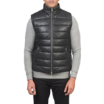 Home Men Leather Vests Reeves Black Leather Puffer Vest