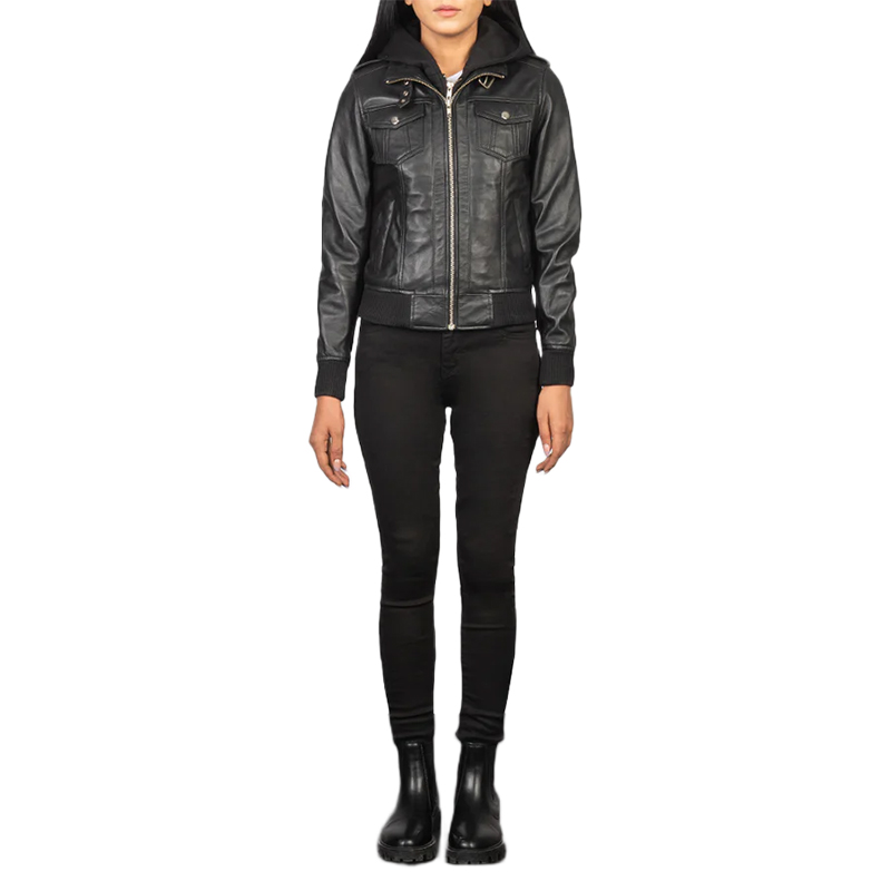 Be the first to review “Roslyn Black Hooded Leather Bomber Jacket” Cancel reply