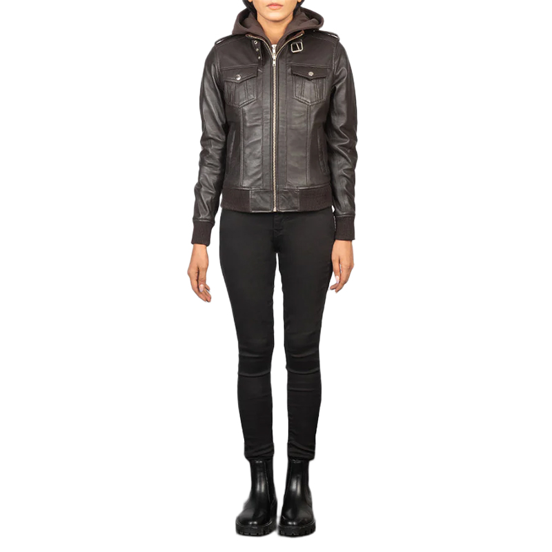 Be the first to review “Roslyn Brown Hooded Leather Bomber Jacket” Cancel reply