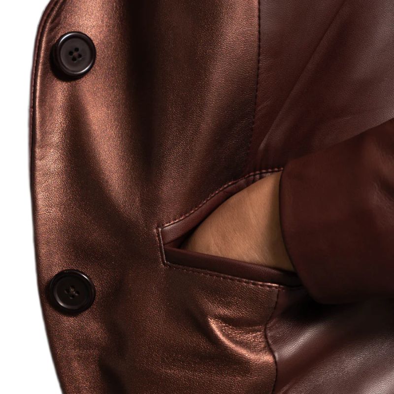 Be the first to review “Ruby Metallic Maroon Leather Blazer” Cancel reply