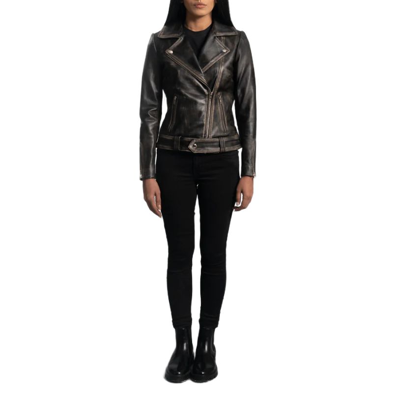 Home Women Biker Jackets Rumy Distressed Brown Leather Biker Jacket