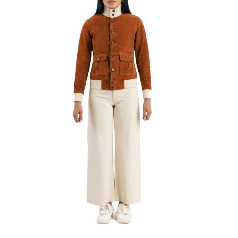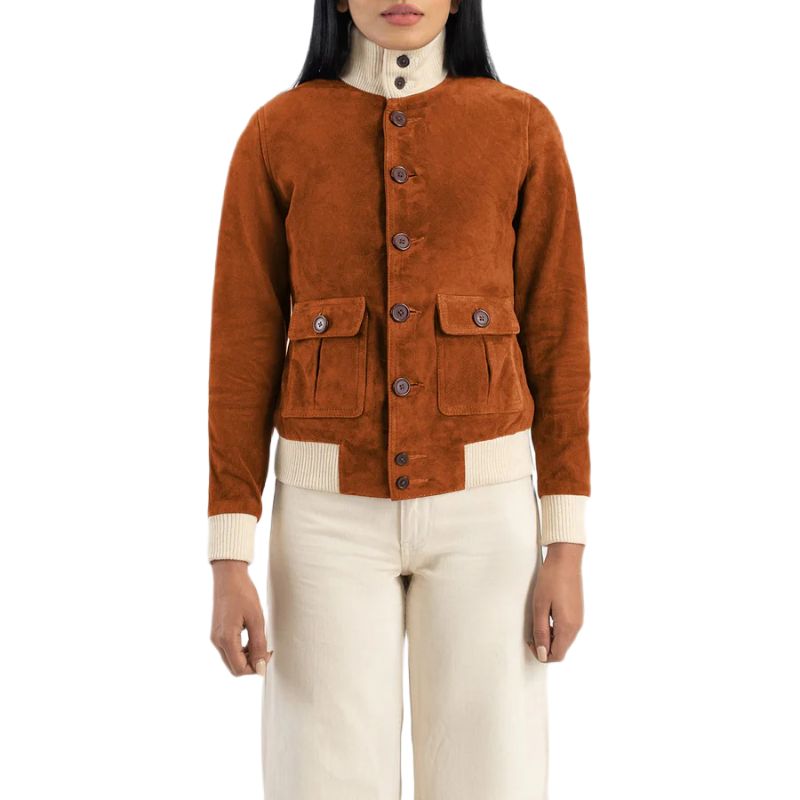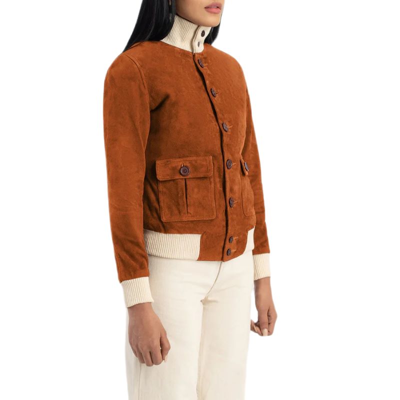 Home Women Suede Jackets Sasha A1 Brown Suede Bomber Jacket