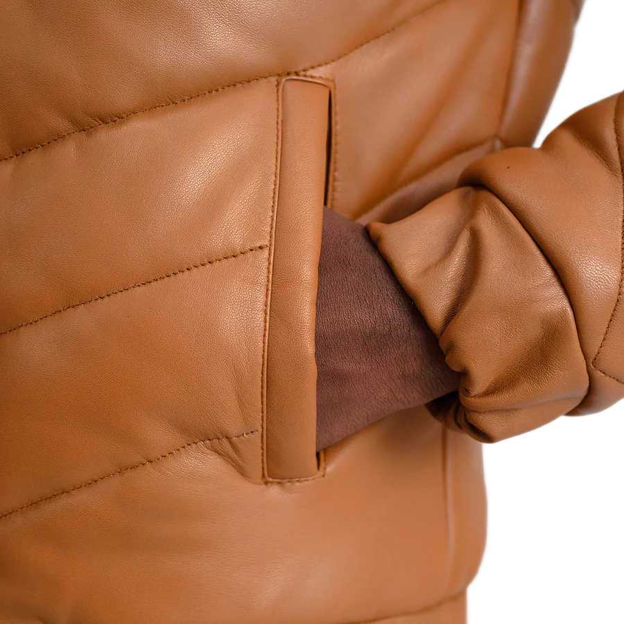 Be the first to review “Travis Tan Leather Puffer Jacket” Cancel reply