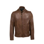 This customized handmade Cafe Racer jacket is made from vintaged cowhide leather, offering a classic distressed look with true motorcycle attitude. The streamlined design features a front zip, low stand-up collar, and minimal detailing for an authentic, retro vibe. The distressed finish gives it a broken-in, rugged character from day one, while the sturdy cowhide ensures lasting durability. Reinforced stitching and functional pockets enhance its practicality. Perfect for riders and vintage lovers alike, this jacket delivers timeless style with handcrafted quality and bold, lived-in appeal.