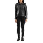 Home Women Aviator Jackets Vixen Black Classic Collar Leather Jacket