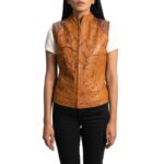 Home Women Leather Vests Westina Tan Dye Leather Vest