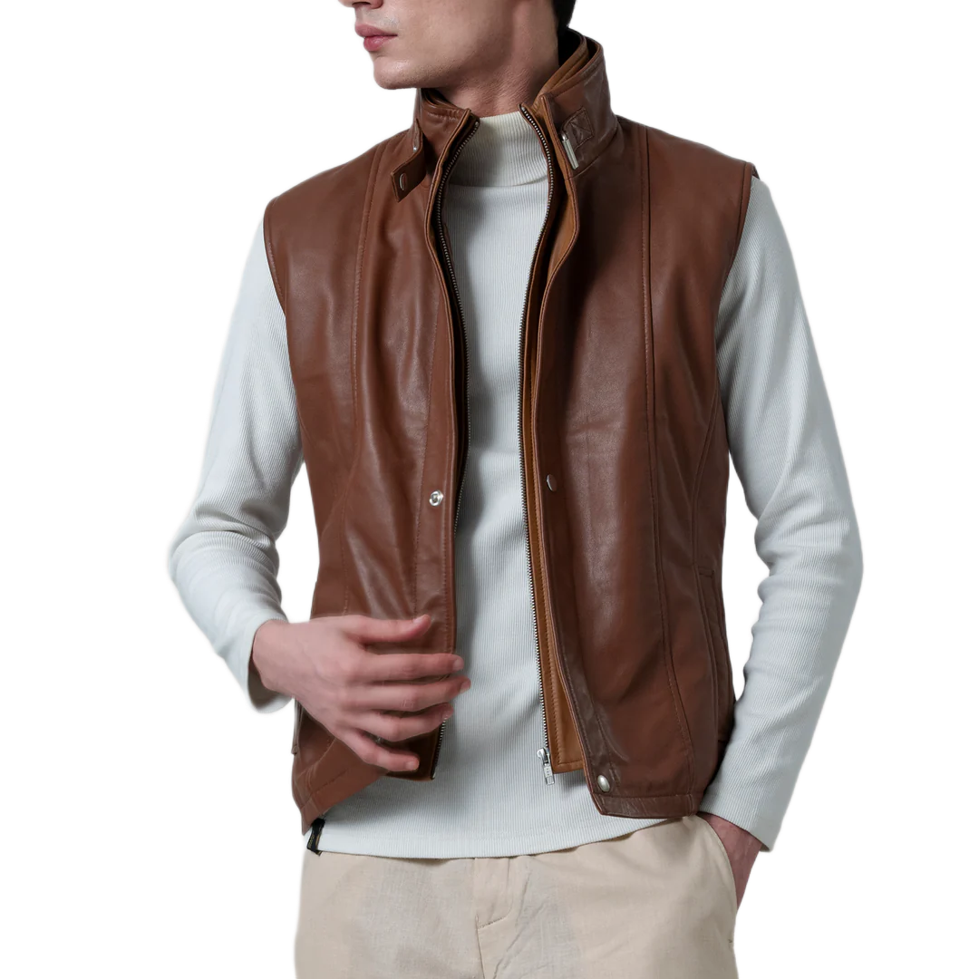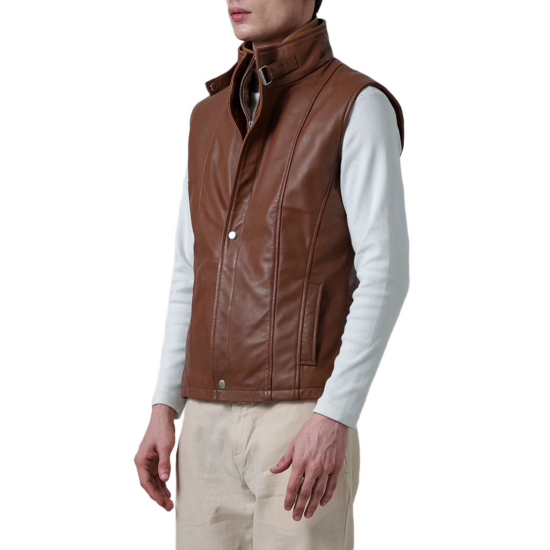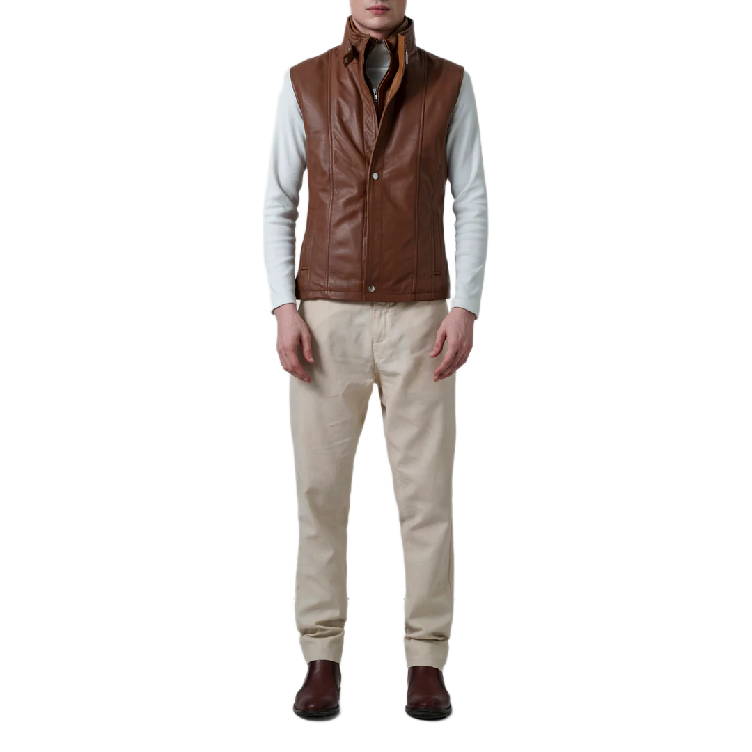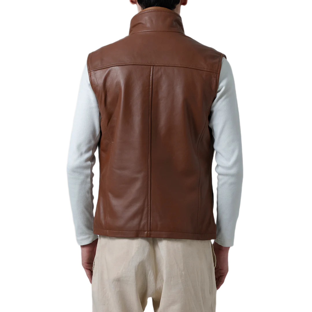 Home Men Leather Vests Zane Waxed Brown Leather Vest