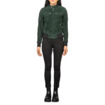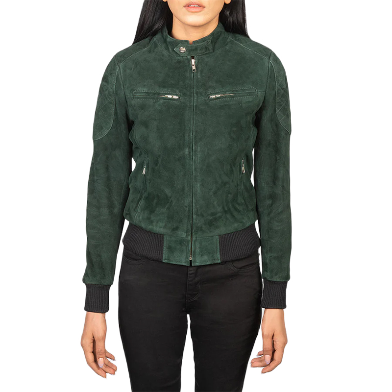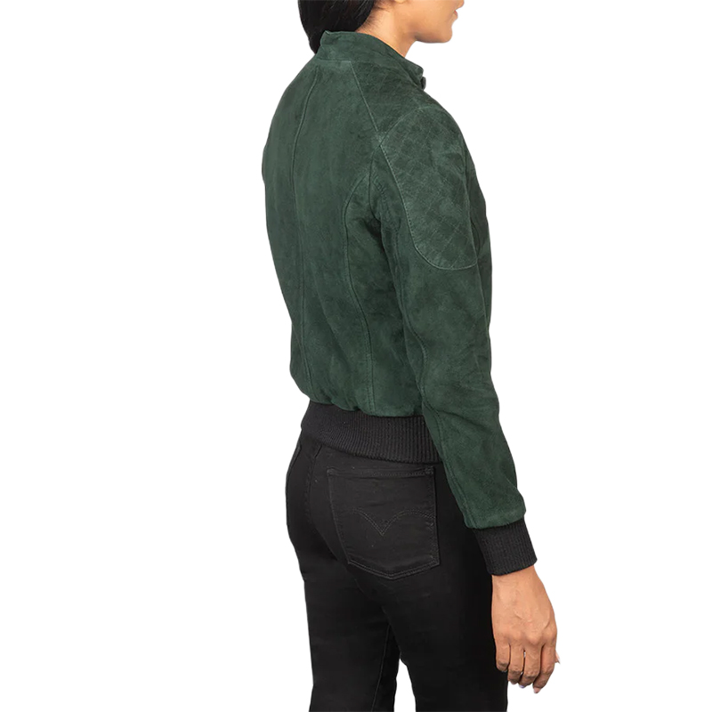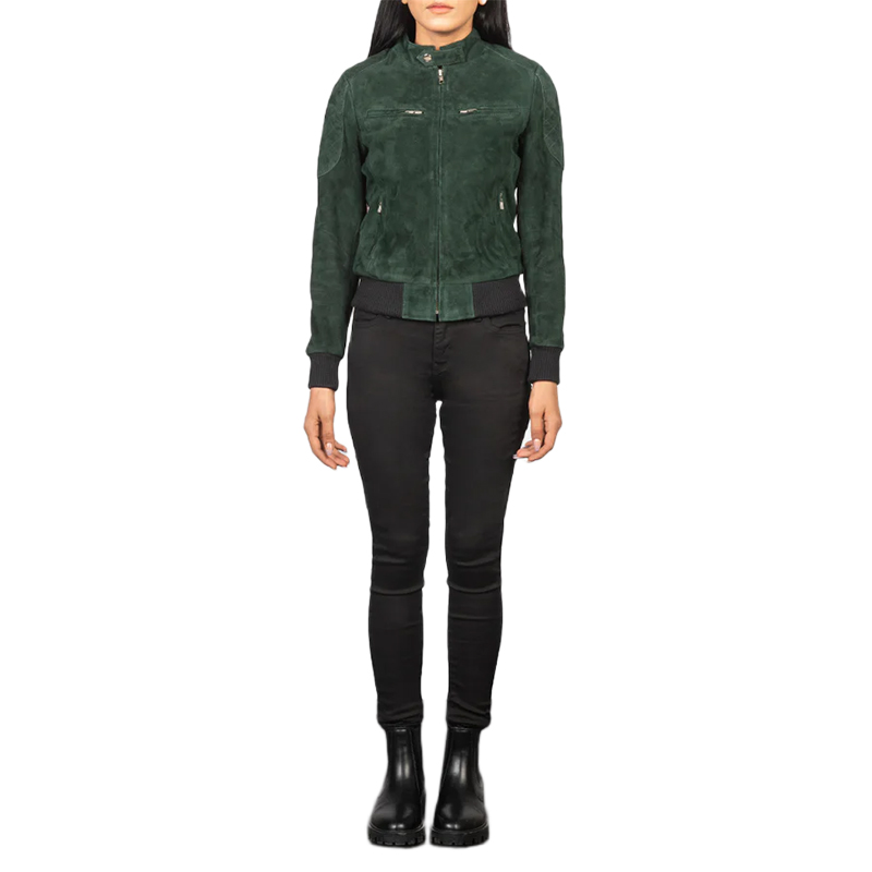 Home Women Bomber Jackets Zenna Green Suede Bomber Jacket