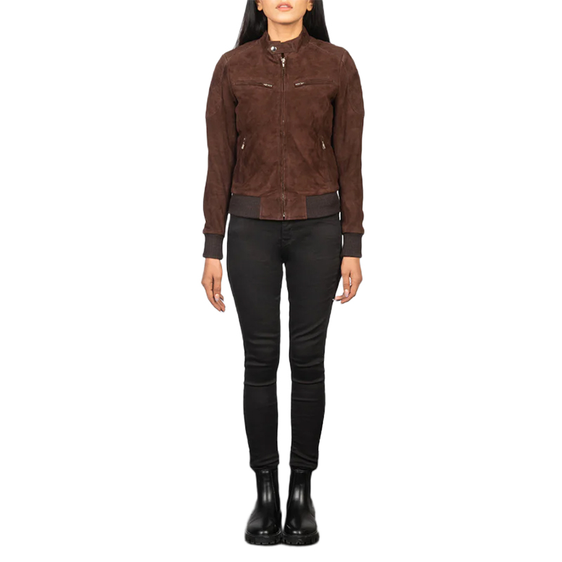 Home Women Bomber Jackets Zenna Mocha Suede Bomber Jacket